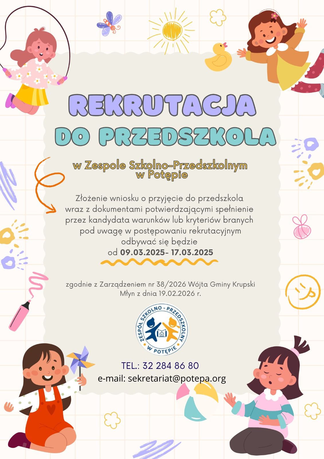 Wszelkie dalsze informacje w zakładce Przedszkole – Rekrutacja do przedszkola